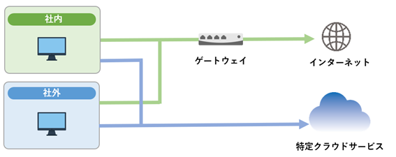 LBOでは、エンドポイント端末が企業のゲートウェイを経由せずにインターネットへ直接アクセスするため、通信の制御や監視が行いにくくなり、セキュリティリスクが高まるという課題があります。