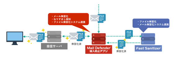 ※セキュアゲートウェイ連携のFast Sanitizerと、Mail Defender侵入防止アプリ連携のFast Sanitizerはモデルが異なります。